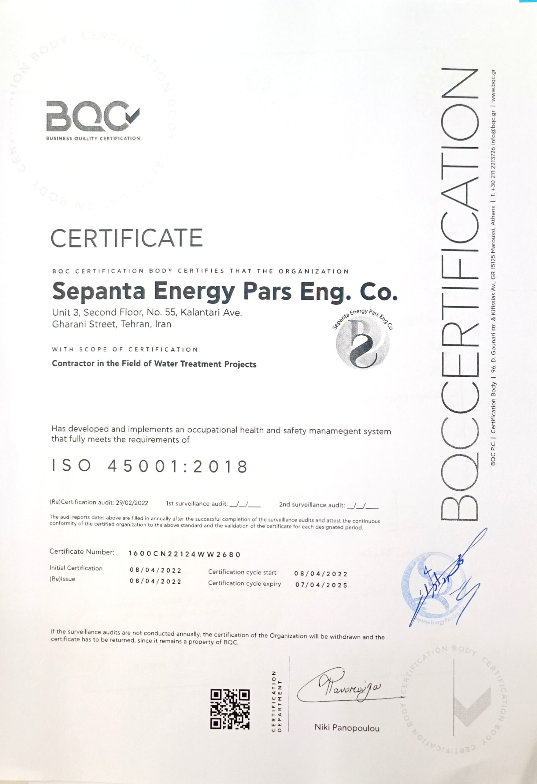 استقرار ISO 9001/14001/45001 و ایجاد واحد O&M.